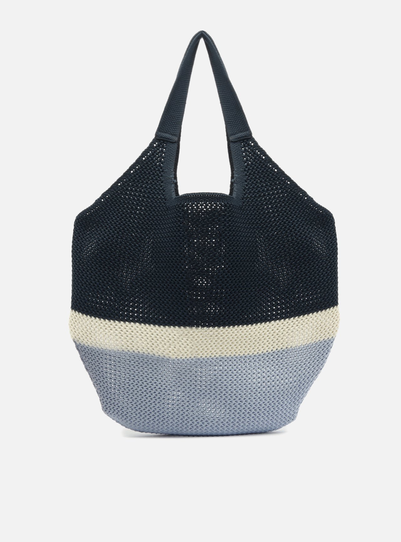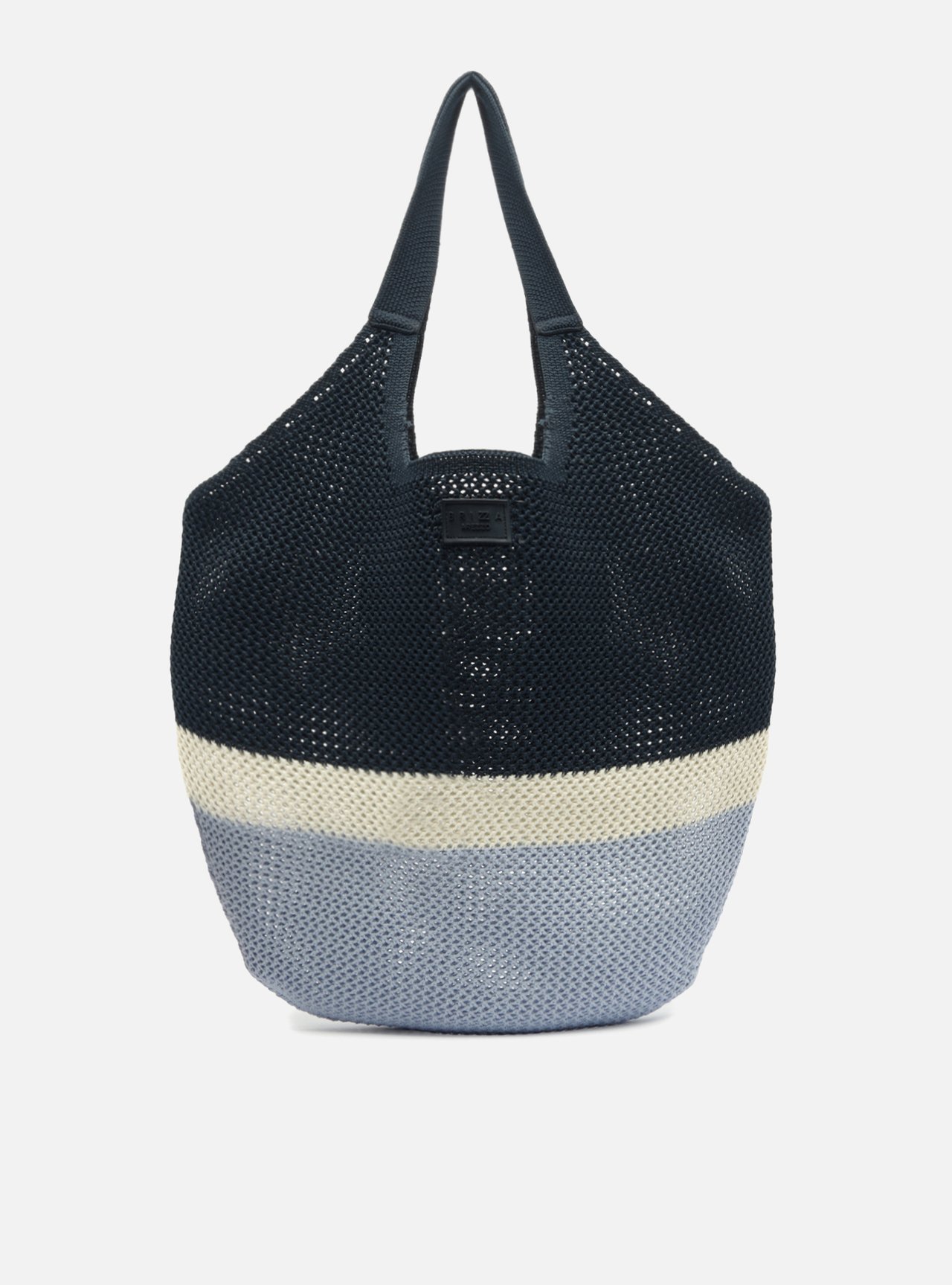 Descrição: Bolsa shopping grande em crochê na cor azul, alça de ombro, fecho em zíper, interno amplo.
