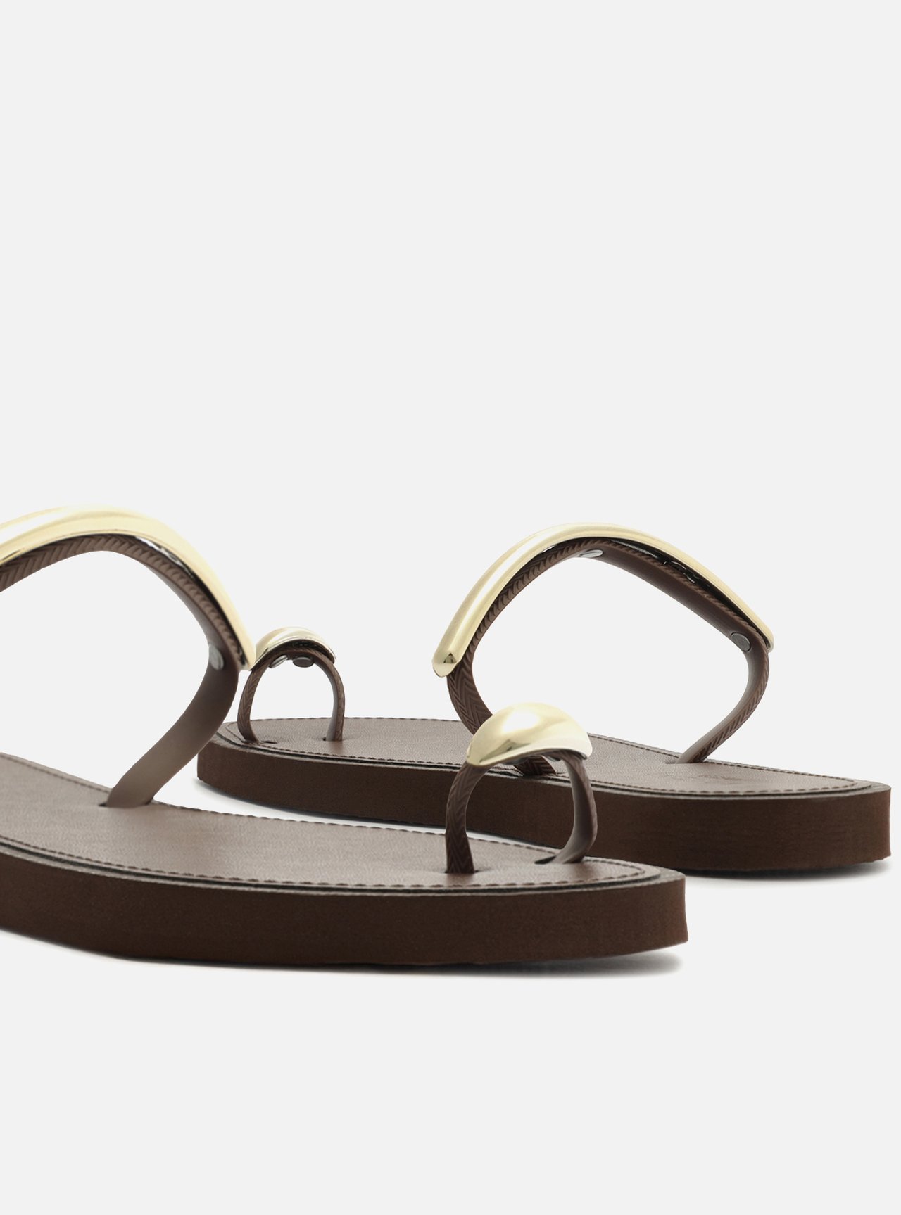 Cor: Marrom Tamanho: 33/4 – 35/6 – 37/8 – 39/0 Descrição: Sandália rasteira marrom em EVA. O modelo tem sola flat, bico redondo e palmilha texturizada. Traz duas tiras finas e cruzadas sobre o peito do pé. O fecho é por tira fina com fivela lateral. Aberta, a sandália exibe todo o pé. Referência: 1917900010002U